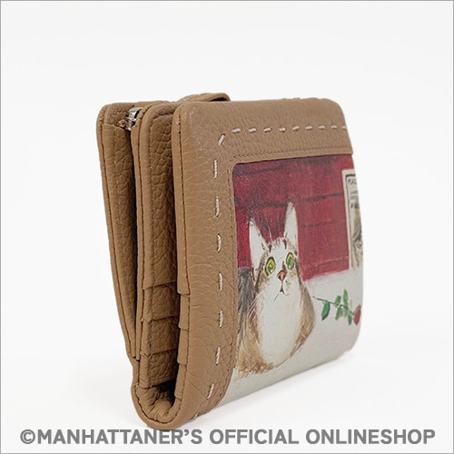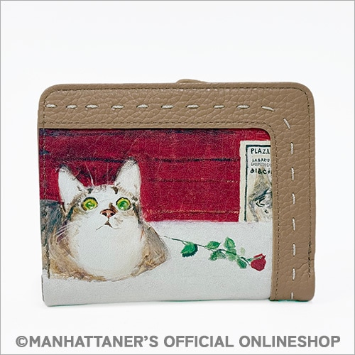 素材と一部仕様を変更したシリーズです。 発色が良く、タッチ感が良いソフトシュリンクの牛革に 久下先生の作品をプリントしました。 ![]() ![]() 正面 ![]() 背面 ![]() 側面 ![]() カードポケット×8ヶ所 ![]() 札入れは仕切り付きの2室構造 ![]() 小銭入れは使い勝手が良いL字ファスナー仕様 内部は仕切り付きの2室構造 商品素材:(本体)プリント牛革 (付属)型押し牛革 裏地:レーヨン100% 商品サイズ: 縦10cm×横12.5cm×マチ3.5cm 中国製 ![]() "Michelangela once again at Plaza de Toros de Las Ventas" 「ミケランジェラ、ラス・ベンタス闘牛場にふたたび」 1996年から1997年にかけて描かれた「すっ飛びフェデリコ物語」というシリーズ作品があります。突然翼を得て飛べるようになったフェデリコがニューヨークに飽き足らず、イタリア、フランスやスペイン、さらにはアフリカや南米まで飛行訪問し、途中やはり翼猫のミケランジェラやマーベリック・クマと出会うという物語です。一緒に世界中を旅したフェデリコとミケランジェラ。スペインではトレドのあたりでフェデリコと離れ離れになってしまい、ラス・ベンタス闘牛場の近くでうるうると涙ぐんだミケちゃんは「ミケランジェラ、フェデリコを思い涙ナミダ・・・」という作品に記録されています。悲しい思い出の場所なのに、また何を思ってか、再びこの闘牛場に現われたミケちゃんです。誰が捧げたのか、赤いバラの花が1本。赤いバラは闘牛場の壁面の赤とあいまって、一見おだやかなイメージのこの作品に、強い感情が隠されているのかもしれないと思わせます。もしかすると、それは久下氏のミケちゃんへの想い・・・かもしれません。