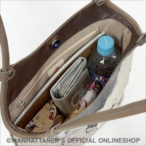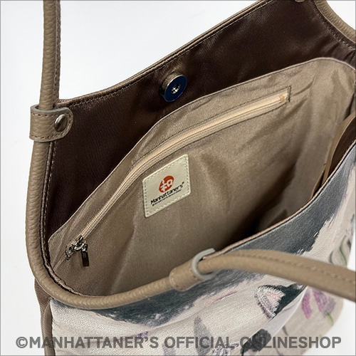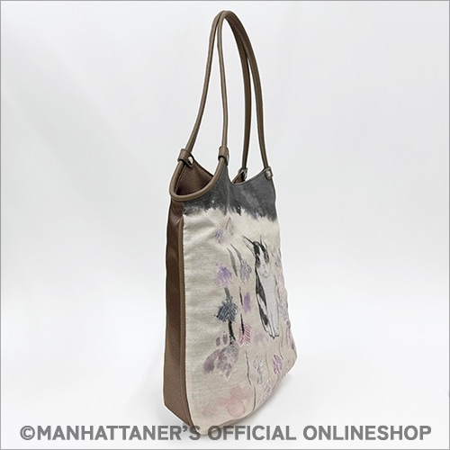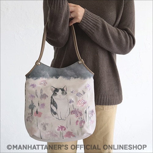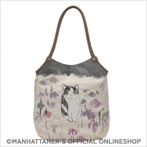 細かい生地目のあるポリエステル繊維に、 人気の作品を転写プリントした手提げバッグ。 スパンコ−ルの煌めきが一層華やかさを引き立てています。 ポリエステル素材を使用しているため、軽量で耐久性も抜群。 どんなシーンにもマッチし、使い勝手も良いので、 さまざまなスタイルに合わせることができます。 ![]() ![]() 正面 ![]() 背面にはファスナーポケット ![]() 側面 ![]() 背側にファスナーポケット ![]() 前側にオープンポケット ![]() B5サイズまで収納可能 ![]() 透明のスパンコ−ル加工を施し、角度や、 光の当たり方でキラキラと光ります。 商品素材: 本体:ポリエステル/ナイロン 付属:牛革 商品サイズ: 高さ33cm×幅30cm×マチ8cm 持ち手:立ち上がり 22cm 重さ:260g 日本製 ![]() 「逍遥中」 「新和シリーズ」と名づけた一連の作品の1点です。新和シリーズでは、風合いのよい手漉和紙に墨と顔彩と胡粉だけを画材として用い、毛筆で猫を描きました。全体として穏やかな空気を含んだ背景に、ひと猫ひと猫、顔つきや姿で、“風情”とでも言いたい何かが絵から感じ取れるように描いています。この作品は、杜若が群生している中に猫がたたずむ様子を描いています。いずれ菖蒲か杜若とつぶやいたかどうかは定かではありませんが、見る人に気づいて見返しながら一休みと見受けます。猫は、女の子猫に見えなくもありませんが、フェデリコです。