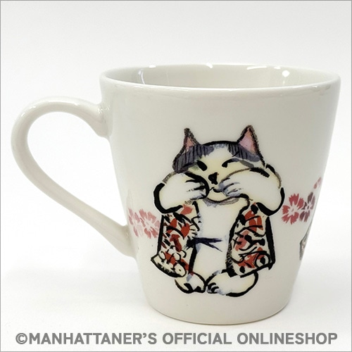薄い作りで軽量、キレイな肌目が「美濃焼」の特徴です。 和の人気作品を転写プリントで表現しており、 自分用にはもちろん、プレゼントにもおすすめのアイテムです◎ ![]() ![]() ![]() 全面に「言わにゃい、聞かにゃい、見にゃい」がプリントされています。 ![]() 内側にもワンポイントの猫がいます。 飲み物を飲むたびに目が合うのと、 入れすぎ注意のメモリ代わりにもなり、 可愛さと機能面を兼ね備えています♪ ![]() 商品素材:磁器 商品サイズ:縦9cm×横8.5cm 容量:350ml 電子レンジ・食洗器使用可能 ※直火・オーブン使用不可 日本製 ![]() 「言わにゃい、聞かにゃい、見にゃい」 言わずと知れたお猿さんの猫版です。日本語の語呂合わせがあまりにもぴったりなので、日本が発祥の地と思われがちですが、そうでもないようです。並び方もいろいろで、日光の東照宮の三猿は聞かざる、言わざる、見ざるの順に並んでいます。確かめもせずに、久下氏が好き勝手に並べたと思いましたが、これはとんだ失礼でした。猫たちは立ち姿で可愛いちゃんちゃんこを着せてもらい、こんな三人組がいたら、手を合わせて拝みたくなるかもしれません。猫は何を言っても、人間が都合よく解釈したり、獣医や動物学者が「その鳴き声の意味はこうである」などと説いてくれるから、言わにゃいなんて自らを慎まなくてもよさそうですね。