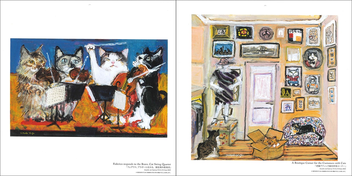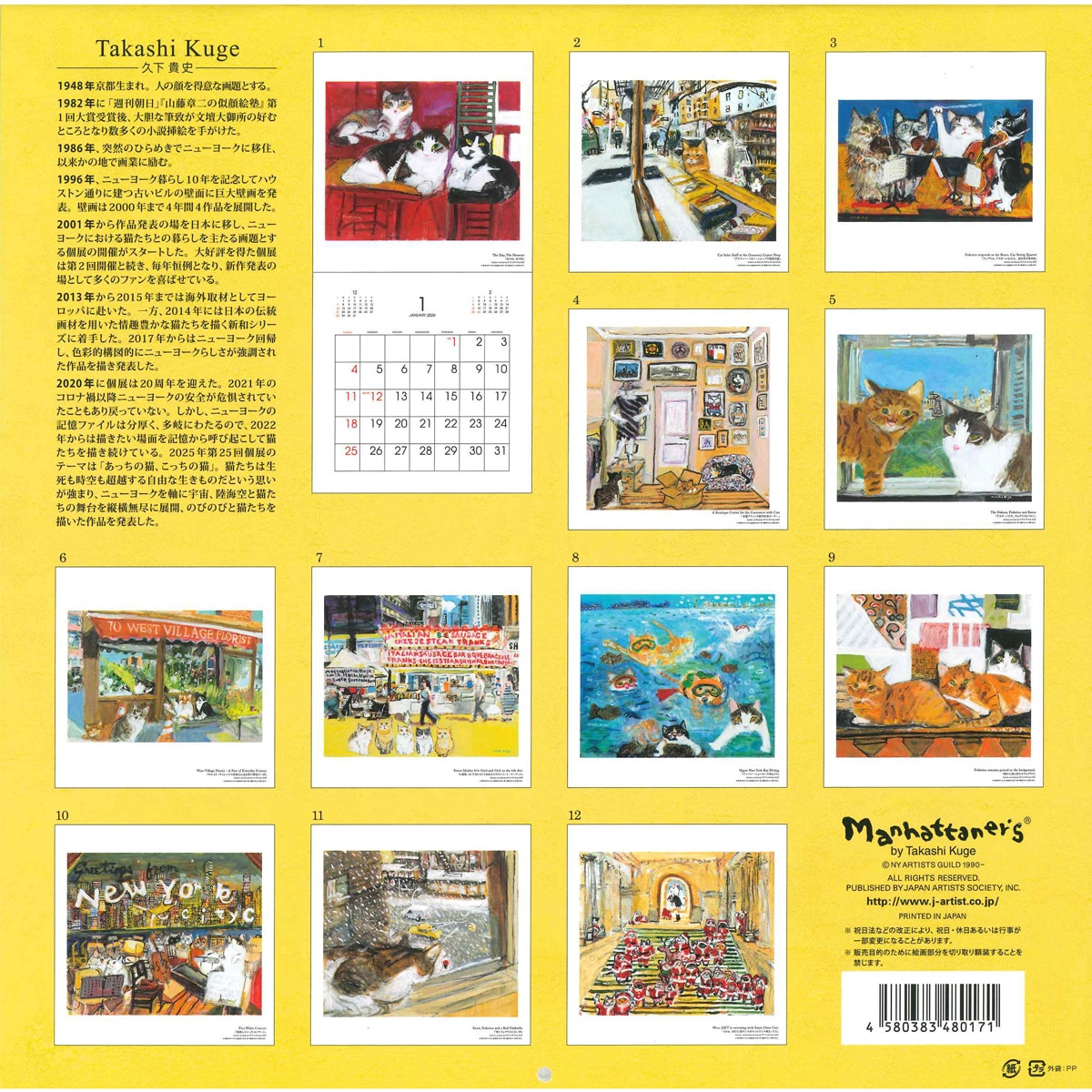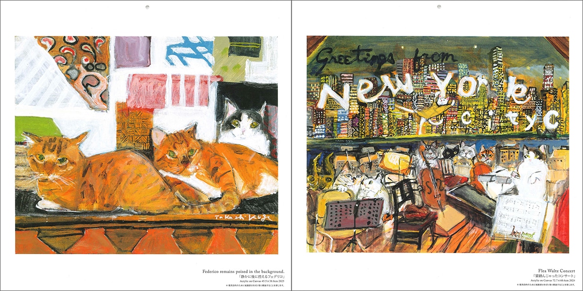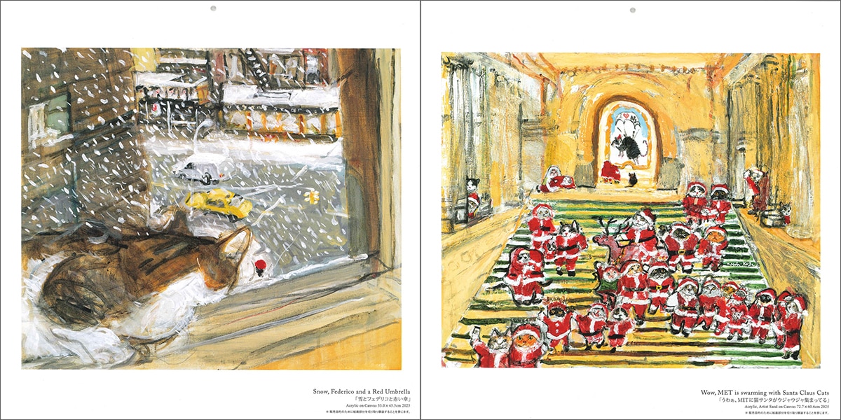 「NY CAT CALENDAR」の2026年版。 ニューヨークを描いた作品を中心に 12点が収録されております。 ![]() ![]() ![]() 1月「あの日、あの時」 2月「グラマシー・リカー・ショップの猫販売員」 ![]() 3月「フェデリコ、ブラボーに応える。猫弦楽四重奏団」 4月「老舗ブティック猫同伴客コーナー」 ![]() 5月 「ダコタ・ハウス、フェデリコとバロン」 6月「ウエスト・ヴィレッジの花屋さんは日常の景色の一部」 ![]() 7月「6番街、52丁目と53丁目あたりのストリート・マーケット」 8月「アッパー・ニューヨーク湾もぐり」 ![]() 9月「静かに後に控えるフェデリコ」 10月「猫踏んじゃったコンサート」 ![]() 11月「雪とフェデリコと赤い傘」 12月「うわぁ、METに猫サンタがウジャウジャ集まってる」 作品画像及び紹介文の無断転載・使用は禁止いたします サイズ:タテ30cm×ヨコ30cm Printed in Japan ページのトップへ戻る カレンダー手帳 関連商品